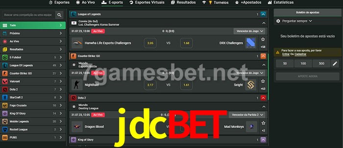 O jdcbet oferece uma grande seleção de opções de apostas em e-sports com probabilidades competitivas